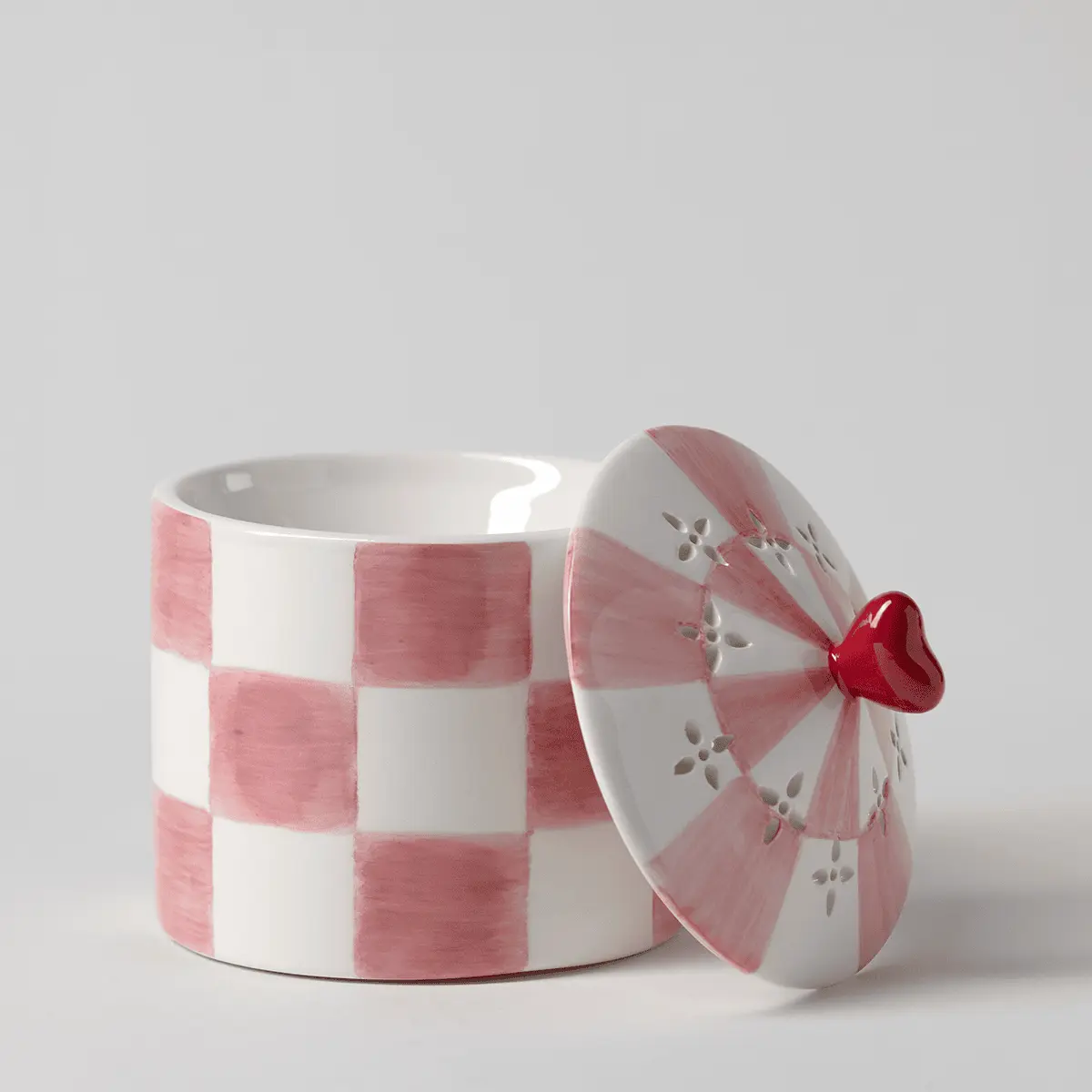 Bows punctuate artisanal confetti glass in this elegant, yet playful piece. When lit, this Warmer’s blush glow highlights its unique patterns, underscoring the craftsmanship at the heart of its deceptively simple design.