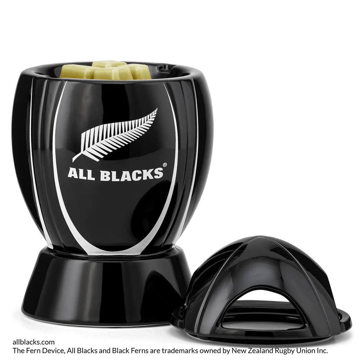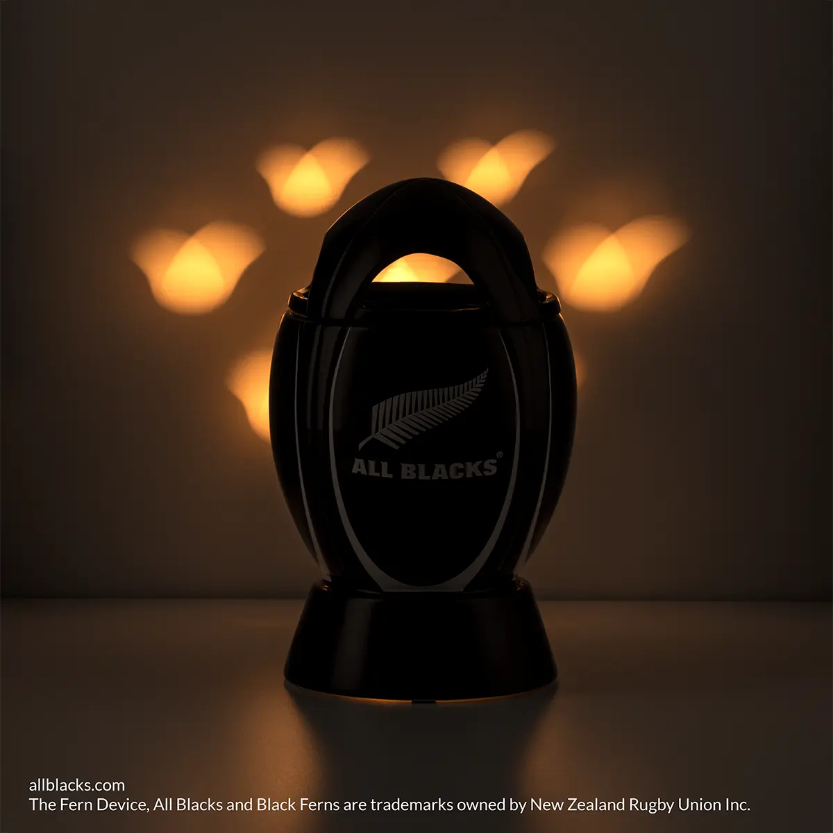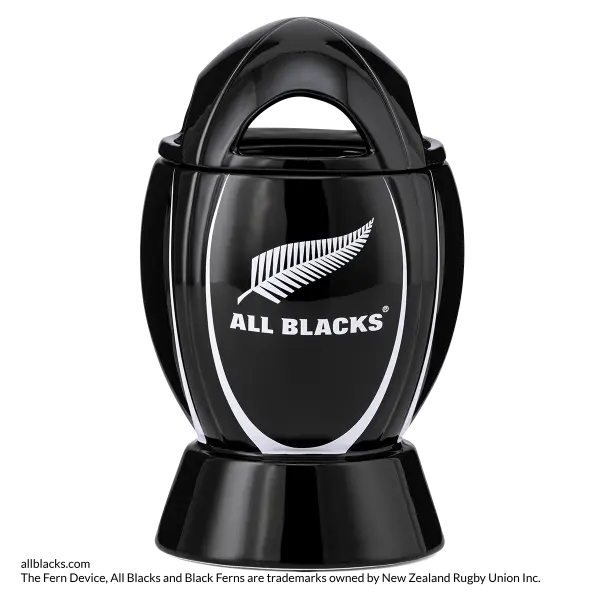 Show your team spirit with this rugby ball-shaped warmer — complete with the signature colors and silver fern of the All Blacks®.