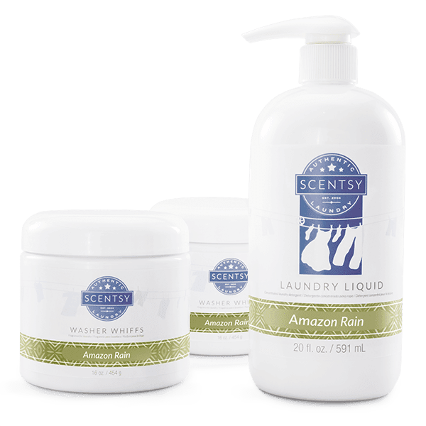 Amazon Rain Laundry Bundle: Sweet notes of MELON, ORANGE ZEST, COCONUT MILK and JASMINE. The Laundry Bundle includes (2) washer whiffs and a laundry liquid all in the Amazon Rain fragrance.