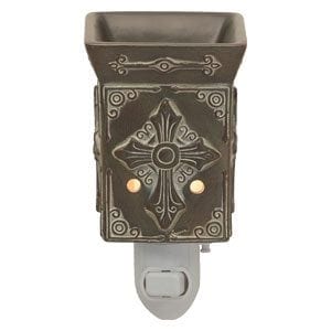 Charity Scentsy Warmer also known as the Scentsy Nightlight is 3.5″ tall and uses a 15 watt bulb to warm and melt our Scentsy bars. Understated and inspired, Charity’s matte antique white finish over slate-like shades of brown, rust, and green highlights embossed Spanish-style details.