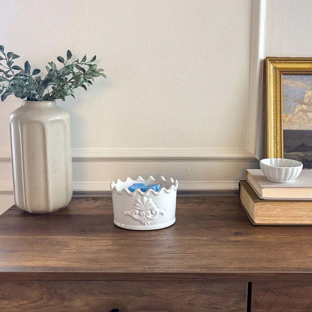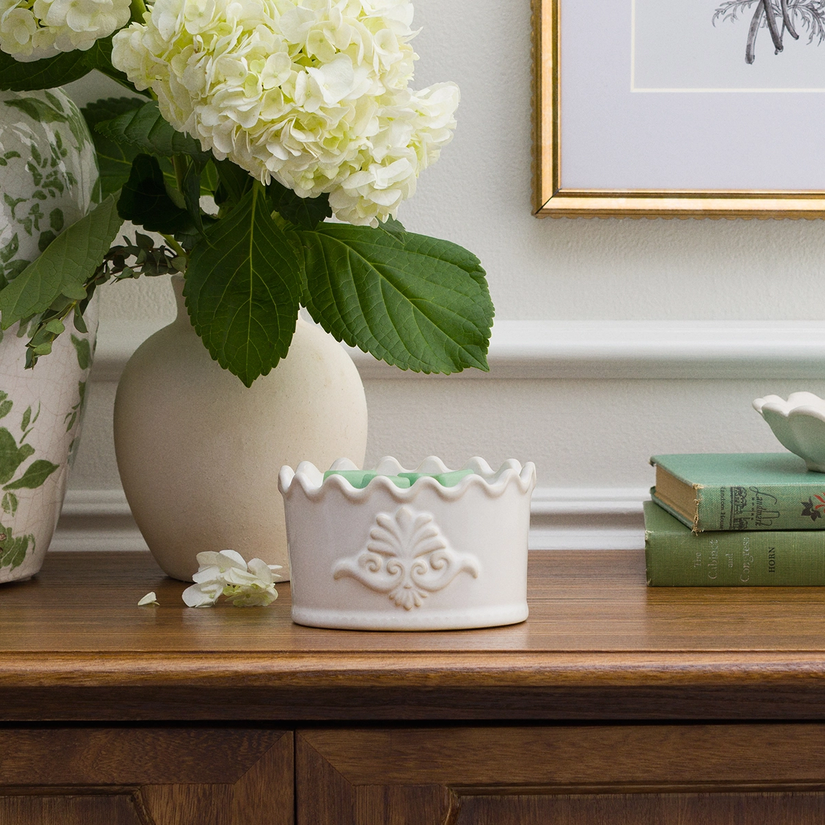 A timeless accent piece that elevates any interior with understated elegance. With traditional detailing that never goes out of style and a reactive glaze that ensures each piece has its own subtle variations, this compact Warmer is the essence of classic décor.