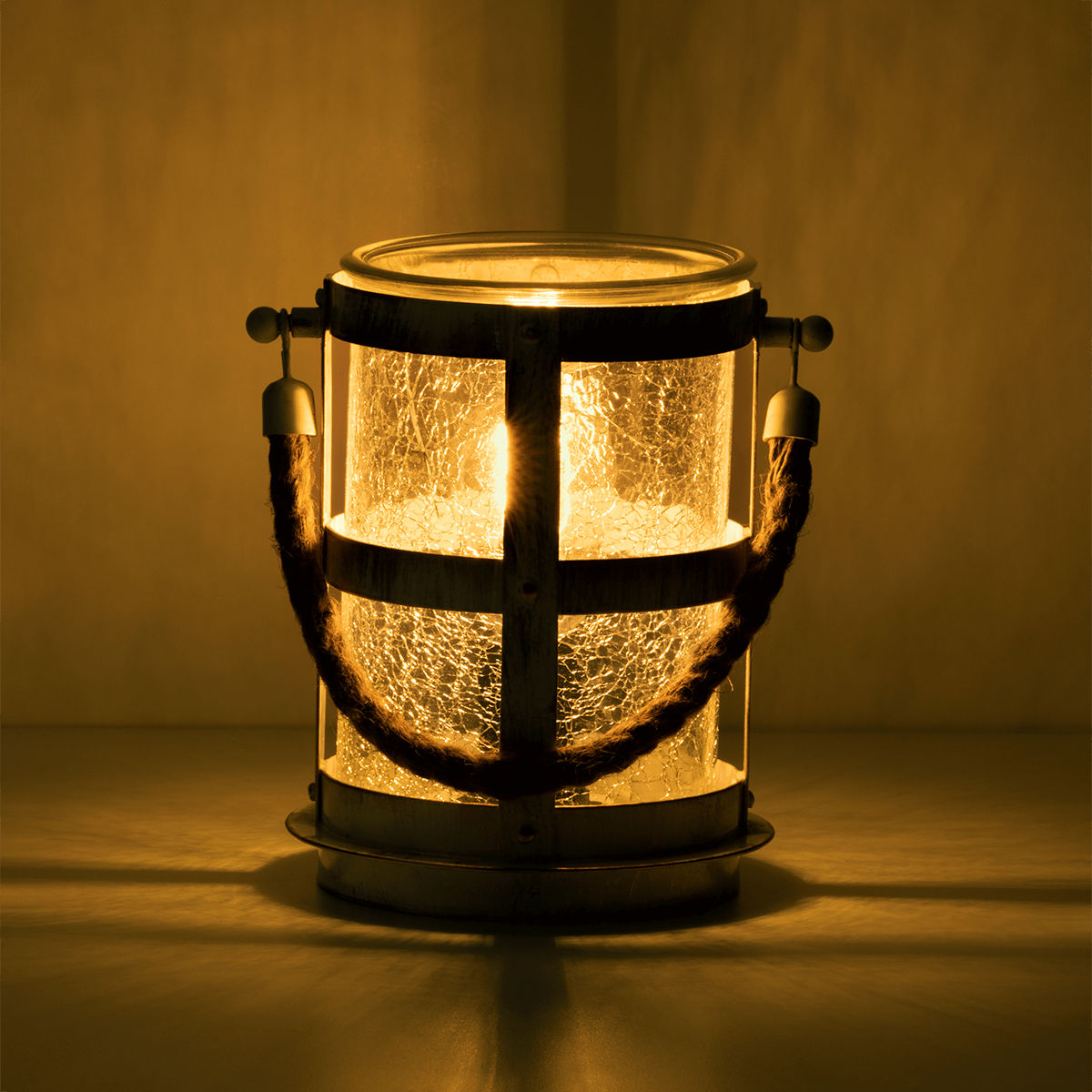 The coast is clear! Crackle glass and a decorative jute rope handle give off a seaside vibe, while an Edison bulb completes the look.
