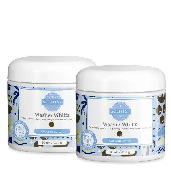 Includes 2 Washer Whiffs (16 oz. each) in our Coconut Cotton fragrance: Sun-warmed cotton, creamy coconut milk, bright citrus and white sandalwood transport you to a cabana on a tropical beach.