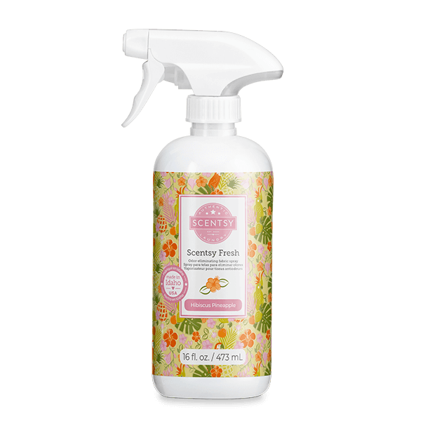 Scentsy Fresh Fabric Spray has powerful molecules that eliminate odors and enliven fabrics with long-lasting fragrance. Mist it on hard-to-wash surfaces such as carpets, upholstry, bedding and curtains to freshen any room. Eliminate unpleasant odors with a squeeze of a trigger! Comes in a 16 ounce bottle.
