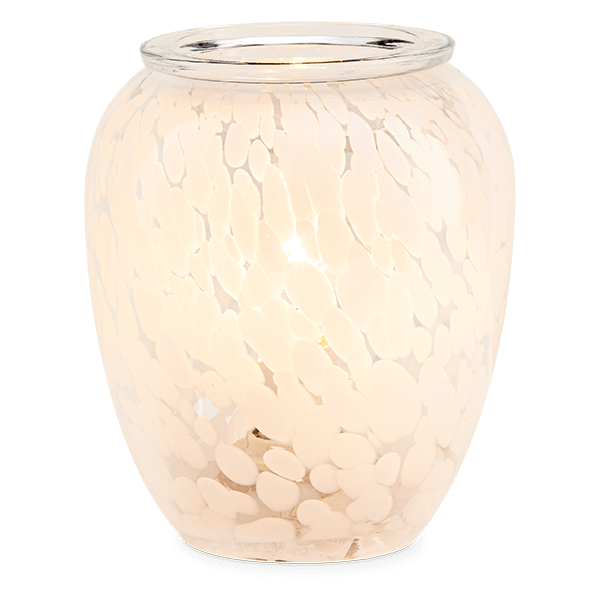 The In the Clouds warmer is a perfectly whimsical warmer to add to your home. If you look closely, you can see the melted white glass beads as they create a dreamy, cloud-like pattern.