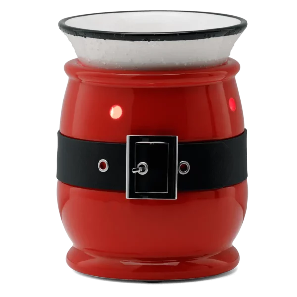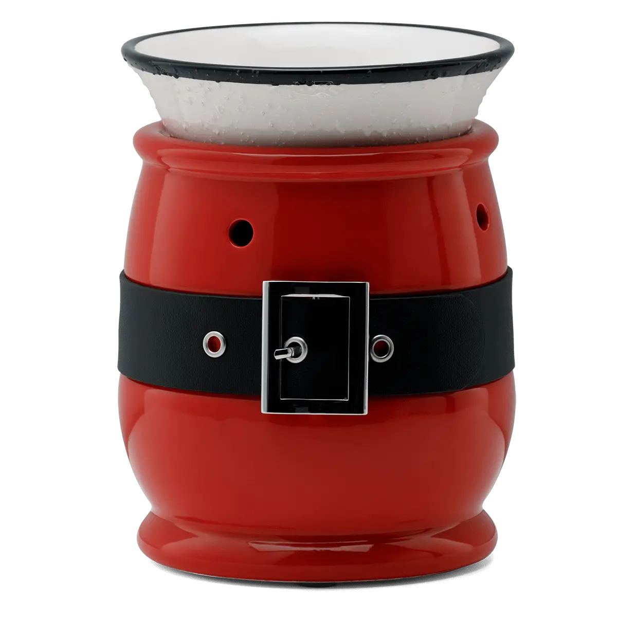 As festive a sight as old St. Nick himself. Jolly’s playful, potbellied base is cinched in a wide black belt and silver buckle. Glazed in bright, Christmas red and trimmed with a contrasting white dish, you won’t be able to resist this very merry midriff!