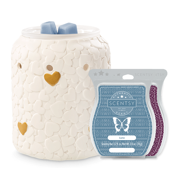 Show your mom the love with our Love Abounds Warmer, complete with a sea of hearts warmed by a soft, dreamy glow and hand-painted gold hearts.