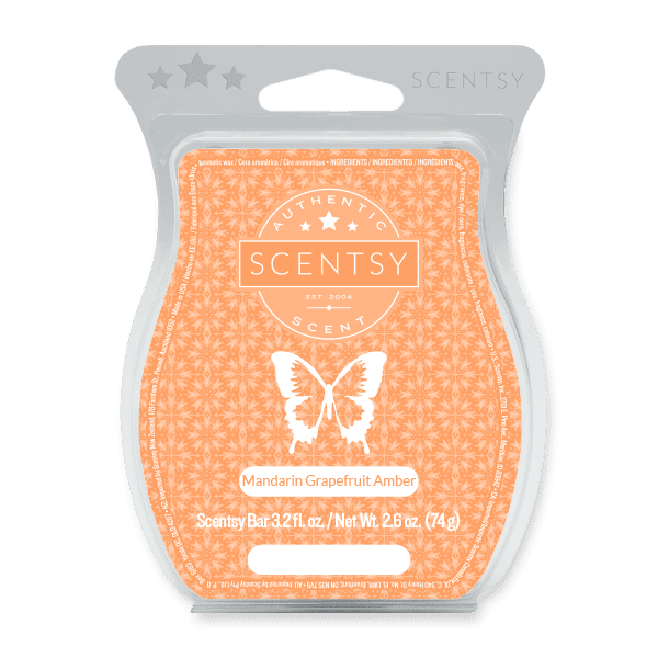 Mandarin Grapefruit Amber Scentsy Bar: SWEET MANDARIN, GRAPEFRUIT and AMBER. 3.2 fl. oz/Net Wt. 2.6 oz / 8 cubes per bar.