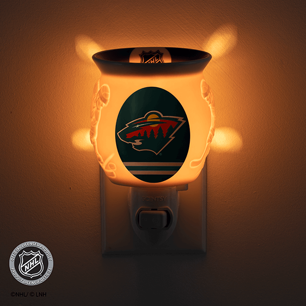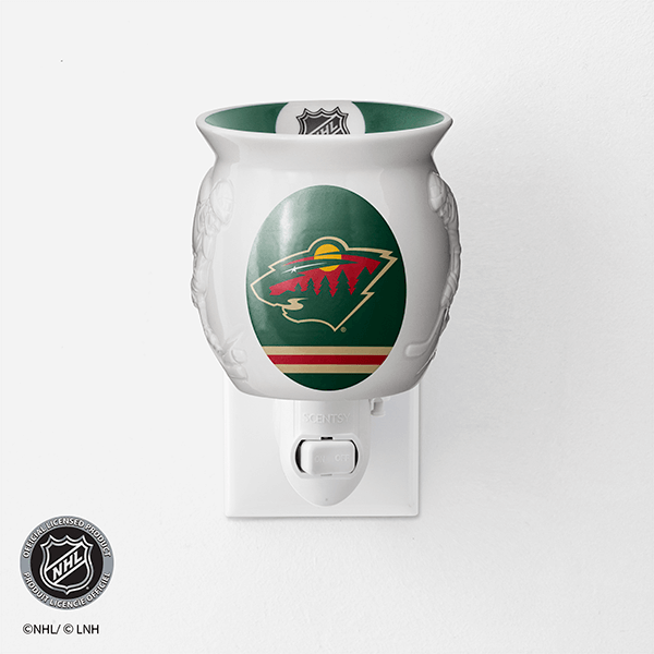 Show off your team in any space with an officially licensed NHL® Collection – Scentsy Mini Warmer. Two hockey players face off around your team’s colors and logo, while the NHL® shield is featured on the dish.
