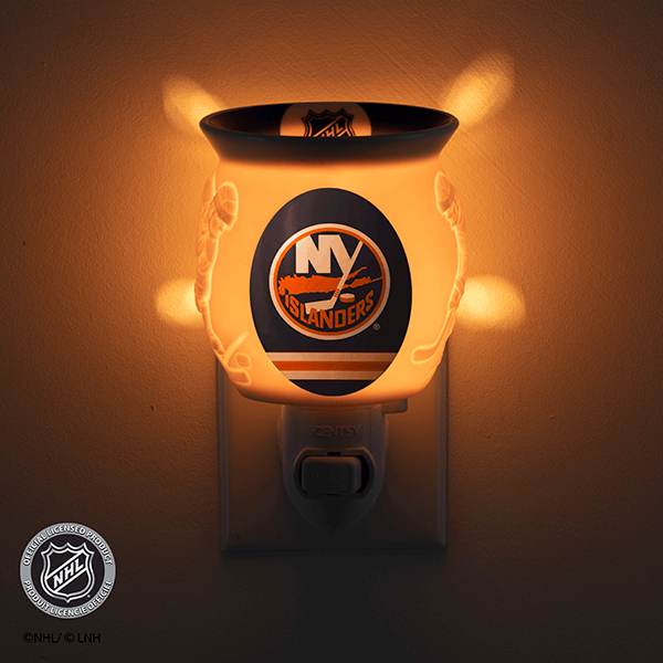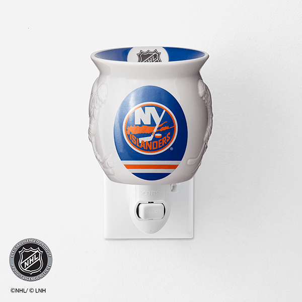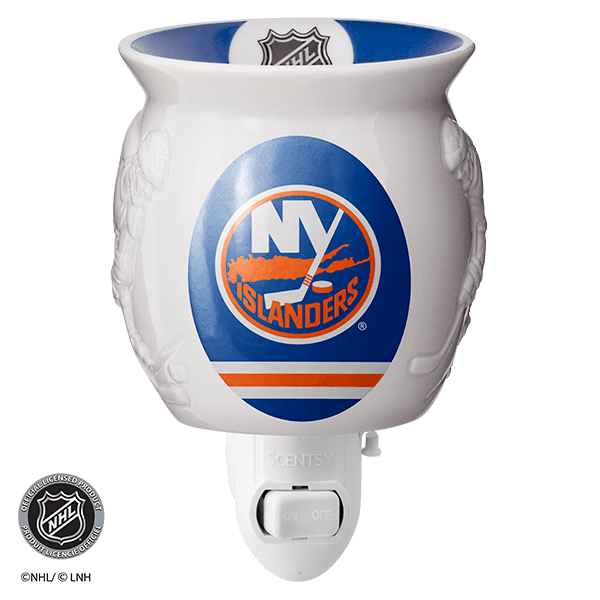 Show off your team in any space with an officially licensed NHL® Collection – Scentsy Mini Warmer. Two hockey players face off around your team’s colors and logo, while the NHL® shield is featured on the dish.