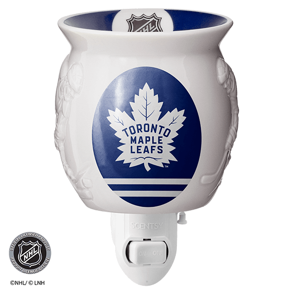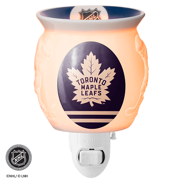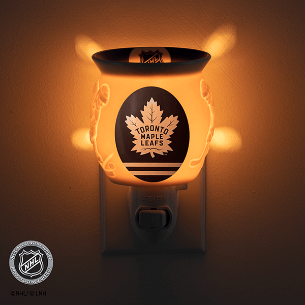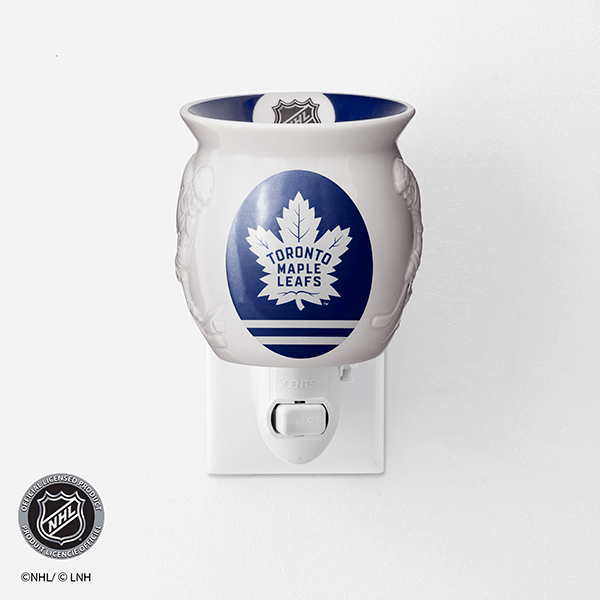 Show off your team in any space with an officially licensed NHL® Collection – Scentsy Mini Warmer. Two hockey players face off around your team’s colors and logo, while the NHL® shield is featured on the dish.