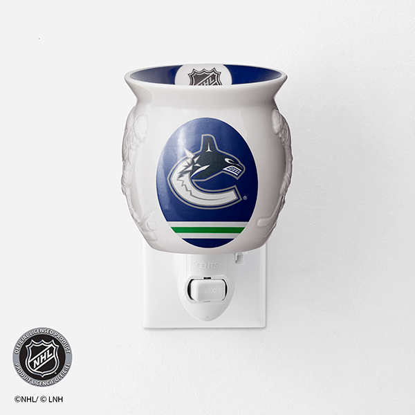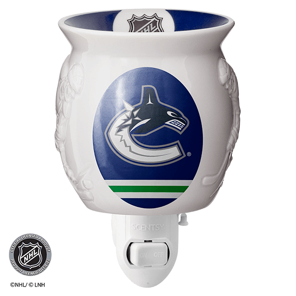 Show off your team in any space with an officially licensed NHL® Collection – Scentsy Mini Warmer. Two hockey players face off around your team’s colors and logo, while the NHL® shield is featured on the dish.