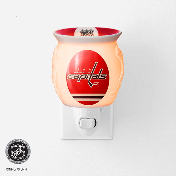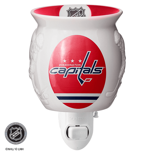 Show off your team in any space with an officially licensed NHL® Collection – Scentsy Mini Warmer. Two hockey players face off around your team’s colors and logo, while the NHL® shield is featured on the dish.