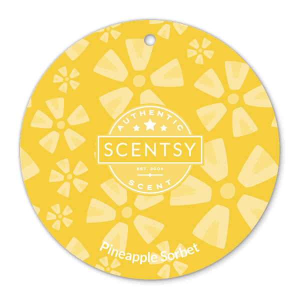 A simple way to take Scentsy fragrance wherever you go. Pull the string out and hang freely. Adjust scent strength by exposing more of the Scent Circle. Buy individually or in 3 pack or 6 pack bundles. Just like a scoop of pineapple sorbet.