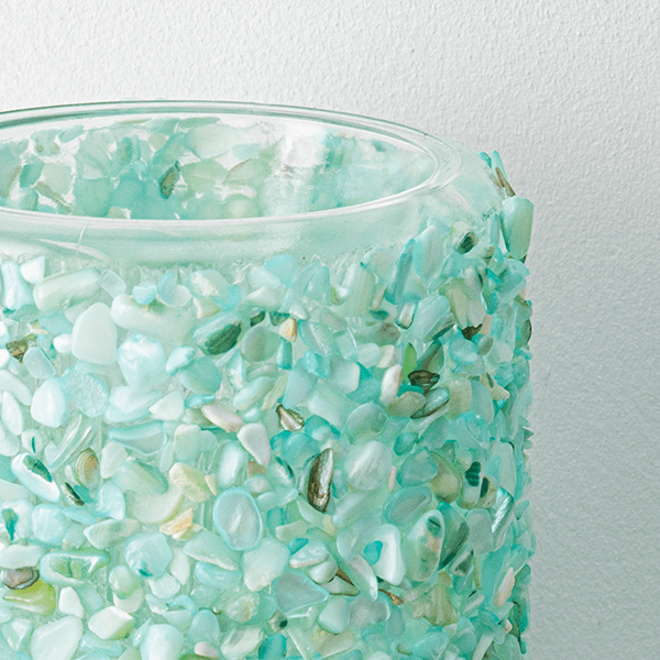 Sea glass-style pebbles, like stones washed in with the tide, echo the serene beauty of the coast.